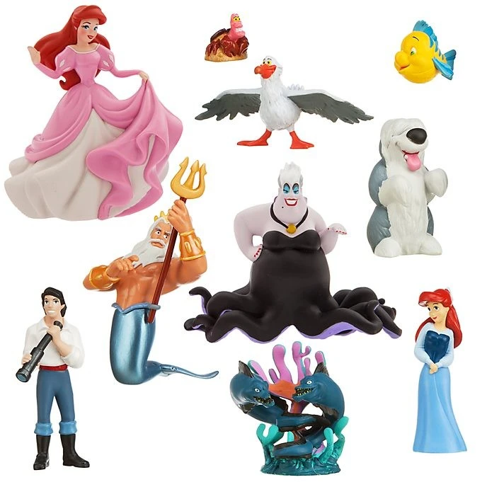 - Personnages : Ariel dans sa robe bleue, Ariel dans sa robe rose, Polochon, Sébastien, Triton, Flotsam et Jetsam, Ursula, Éric, Max et Eurêka