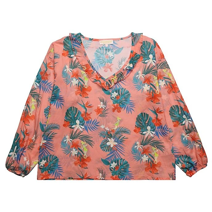 Apportez un brin de magie à votre look ! Chic à souhait, ce chemisier tropical présente un imprimé personnage et un col en V à bordure froncée.