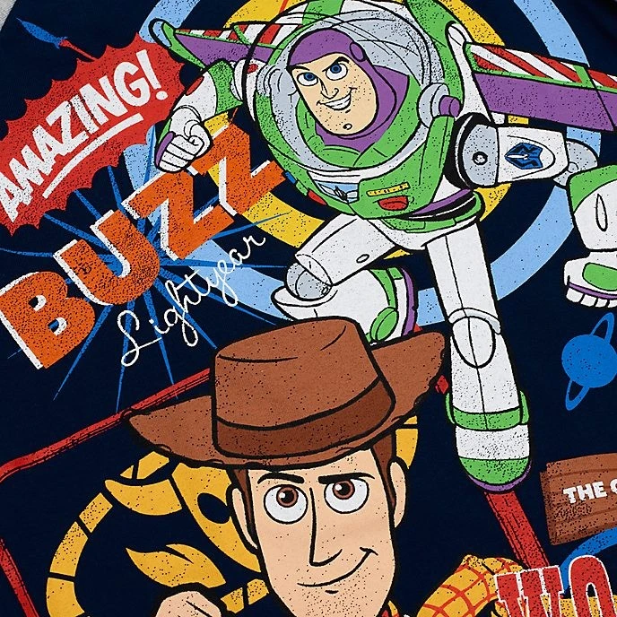 - Inscriptions ”Amazing Buzz Lightyear” (L’incroyable Buzz l’Éclair) et ”The Original Woody the Sheriff” (Woody le shérif)