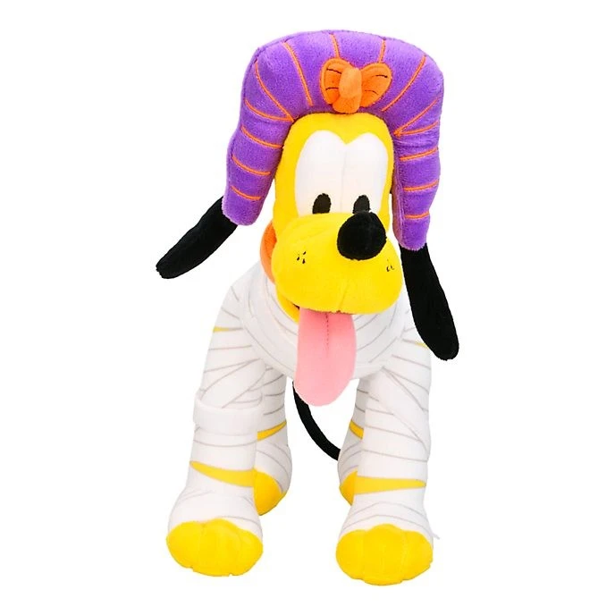 Pluto est emballé à l’idée de fêter Halloween ! Déguisé en momie, le fidèle compagnon de Mickey porte une coiffe en relief.
