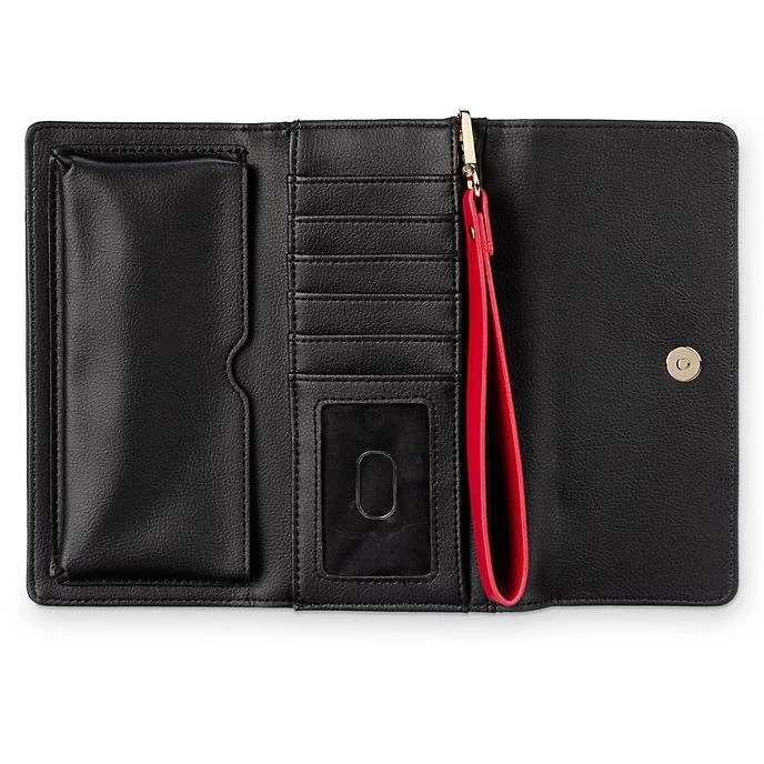 La plus vile d’entre toutes se fera un plaisir de veiller sur votre argent avec ce portefeuille La Reine. Ce modèle coloré est décoré d’un motif classique à l’effigie du personnage, de détails en relief et d’une dragonne amovible.