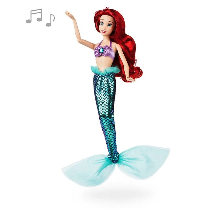 Laissez votre imagination vous emporter sous l’océan avec cette poupée musicale Ariel ! Cette charmante poupée à la queue irisée et aux nageoires pailletées chante sa célèbre chanson, Part of Your World .