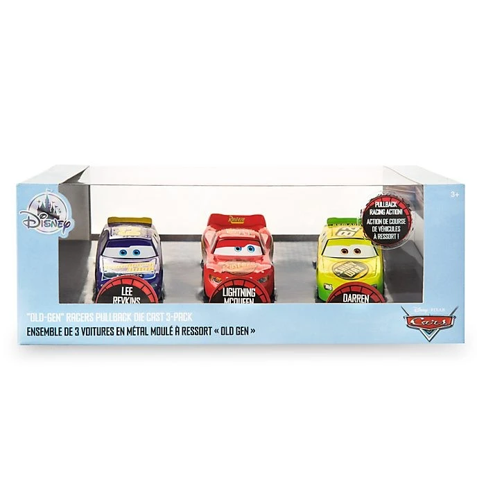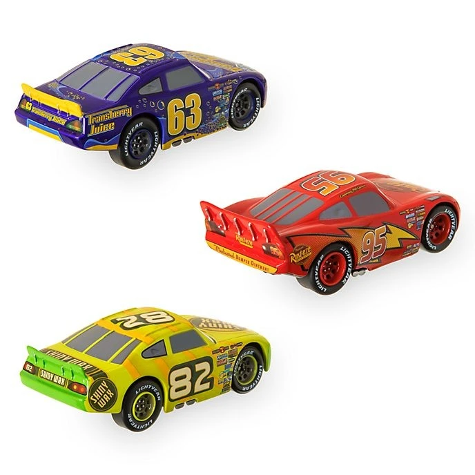 L’heure de la grande course a sonné ! Qui sera le meilleur pilote ? Représentant fidèlement Flash McQueen, Lee Revkins et Darren Leadfoot, ces voitures à friction vont faire chauffer le bitume !