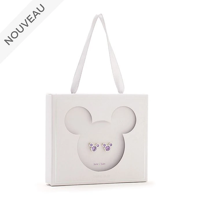 Mickey répond toujours présent pour fêter les anniversaires de ce mois pas comme les autres avec ces élégants clous d’oreilles. Ces zircons cubiques rappellent la pierre semi-précieuse associée au mois de juin et sont sertis dans des clous d’oreilles Mickey en argent fin.