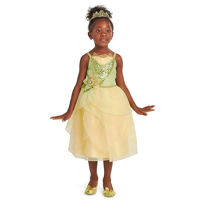 Votre petite princesse sera la reine du bayou dans notre magnifique déguisement Tiana. Cette magnifique robe comprend une jupe brillante avec sur-jupe en forme de pétales et fleur en relief à la taille.